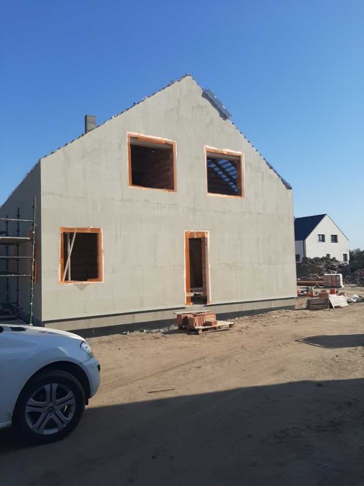 Każdy z domów będzie ogrodzony oraz będzie posiadał kostkę brukową przed wejściem, 2 miejsca parkingowe oraz wyłożony taras z tyłu domu.