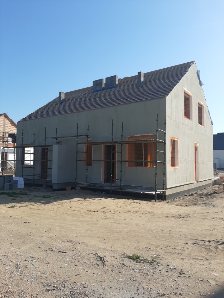 Drugi etap inwestycji prowadzimy na trzech działkach sąsiadujących ze sobą. Działki te mają powierzchnię ok 900 m2. Budowane na nich są trzy domy jednorodzinne dwulokalowe. Każdy z lokali ma powierzchnię 94,20 m2.