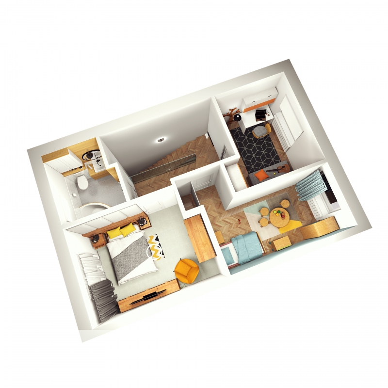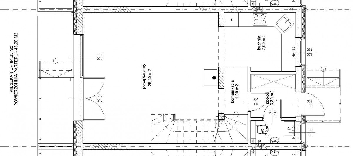 - budowę dwóch budynków mieszkalnych: pierwszy budynek z 6 mieszkaniami, drugi budynek z 9 mieszkaniami, mieszkania dwupoziomowe: parter: 43,2m2, piętro: 40,85m2 łącznie 84,05 m2 i poddasze nie użytkowe o powierzchni po obrysie podłogi około 45m2 oraz przydomowy ogródek o powierzchni około 37 m2